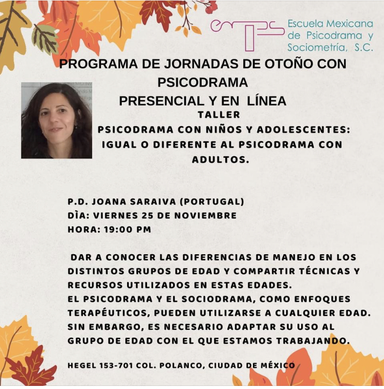 Próximo dia 25/11/2022, vou realizar um workshop relativo ao trabalho com crianças e adolescentes utilizando técnicas psicodramáticas. Terá um formato híbrido (presencial e on-line). Não perca!